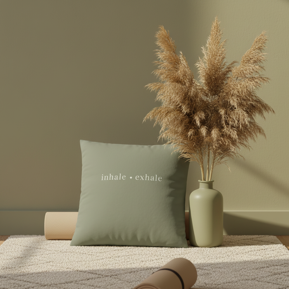 Dieses inhale · exhale Dekokissen bringt eine sanfte, ausgleichende Stimmung in deinen Raum.